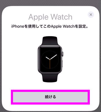 Apple WatchでApple Watchを使う場合は、「続ける」をタップします。
