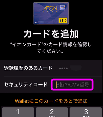 クレジットカードの3桁のセキュリティコードを入力します。