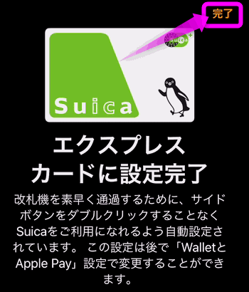 Suicaの場合は自動的にエクスプレスカードとして登録されます。