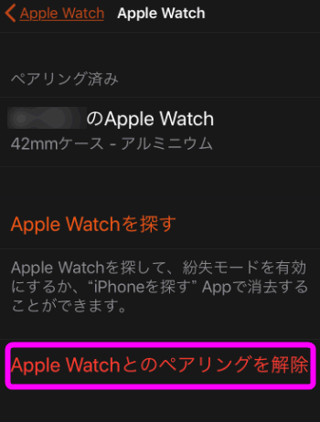 一番下にある「Apple Watchとのペアリングを解除」をタップします。