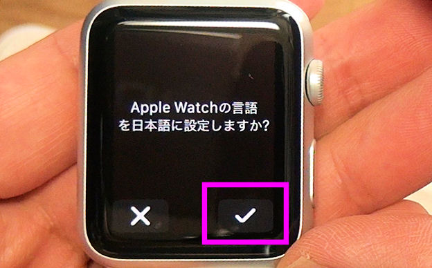 日本語に設定していいか確認してくるので、右下のチェックマークをタップします。