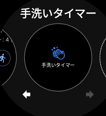 時計の画面の時に右から左へスワイプすると、手洗いタイマーへすぐにアクセスできるようになります。