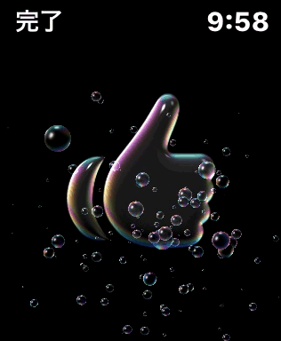 20秒が経過すると、もう一度通知音がして、画面にこのようなグッドのマークが表示されます。この画面は自然に消えます。