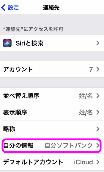 「連絡先」が開くので、自分の電話番号が保存されている連絡先をタップしてください。