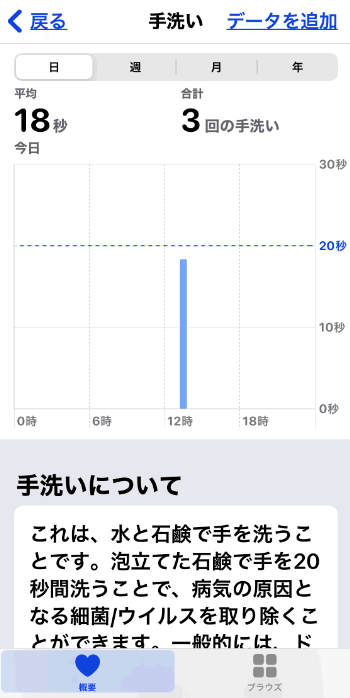 何回手を洗ったかヘルスケアで確認