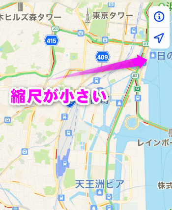 あるいは縮尺が小さい場合。この場合、地図を拡大していくとアイコンが表示されるようになります。