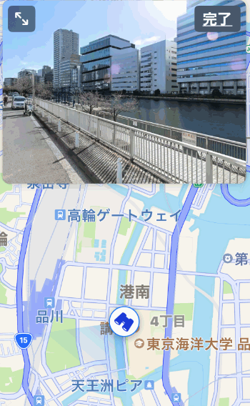 その点、iPhoneのマップのLook Aroundは、動きがスムーズで場所の移動もストリートビューよりも簡単な気がしました。