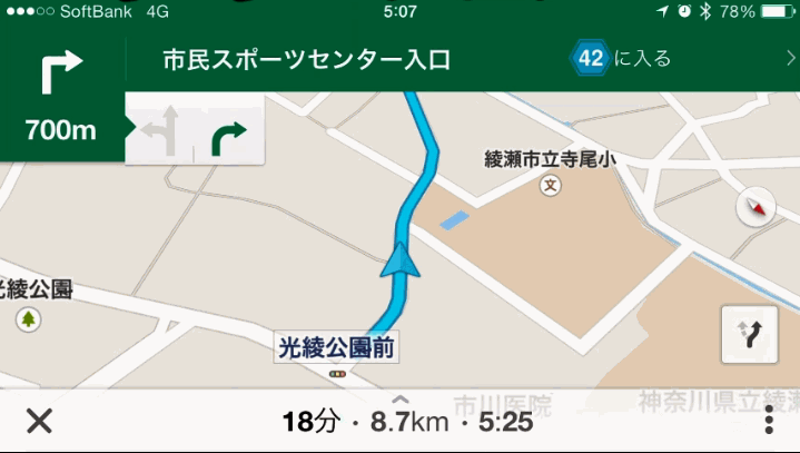 こちらはgoogleマップのナビ画面。