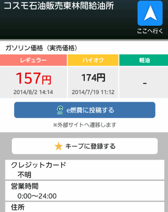 すべてのスタンドってわけではないのですが、現在のガソリン価格を調べることも出来ます。