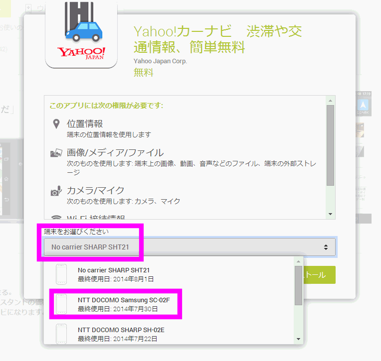 なお、どういうわけかアンドロイドのGoogle Playでは、「Yahoo!カーナビ」が検索できなかったので、パソコン上からインストールしました。