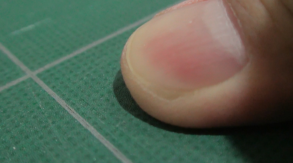 私の想像ですが、このUCHIDAのカッティングマットは断面がこんなふうになっていて、ジュウタンのようなゴムが無数に敷き詰められているような感じなんじゃないかな。と。