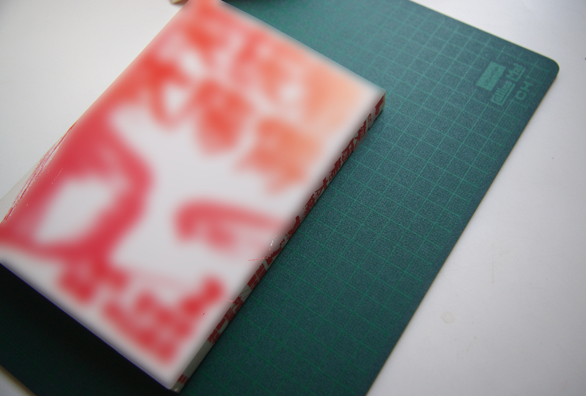 安いカッターマットは単に固いゴム製で、何度も使っているうちに表面がボロボロになってくるのですが、私が使用しているUCHIDA カッティングマットは、ちょっと値段は高いものの、特殊な表面加工でデザイナーや製図の世界のようなプロが使っている本格的なシートで、カッターで傷をつけても全く傷ができません。