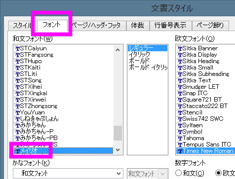 また、デフォルトではフォントの種類が「MS 明朝体」で、すごく読みにくい(文字がギザギザしているし)ので、「メイリオ」にすると読みやすくなります。