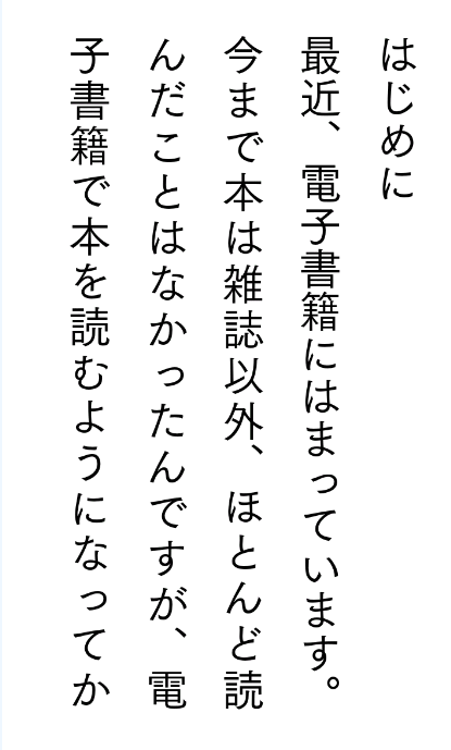 ご覧のようにちゃんと縦書きで表示されます。私は個人的には縦書きのほうが読みやすい気がします。