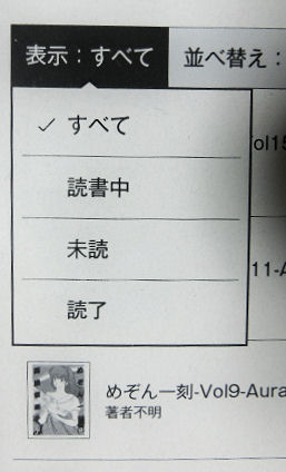 また表示させる本も、「すべて」だけでなく「読書中」「未読」「読了」など選択できるようになりました。