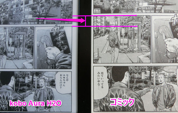 楽天のストアで購入した漫画の場合、Kobo Aura H2O(左)もKobo gloも余白が結構ありますよね。