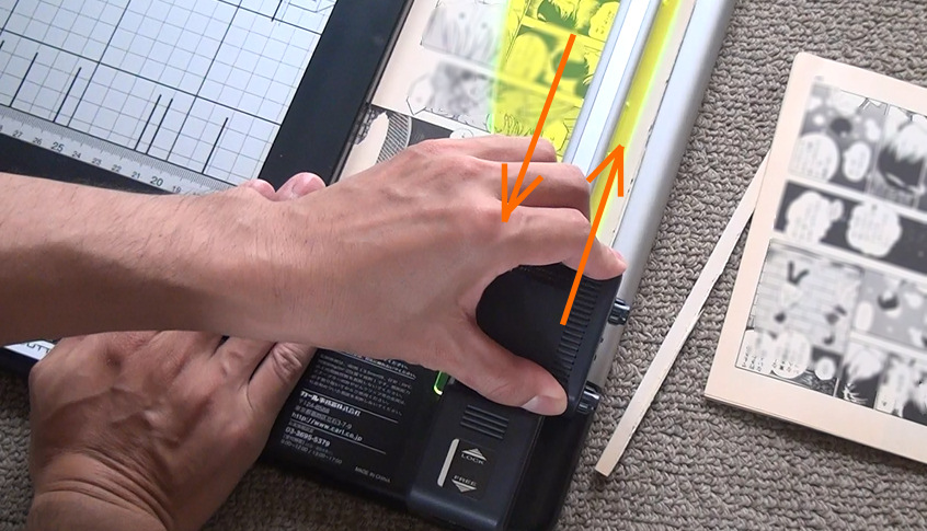 ロックを上げると、このように黄色の蛍光色の板が7ミリほど持ち上がります。
