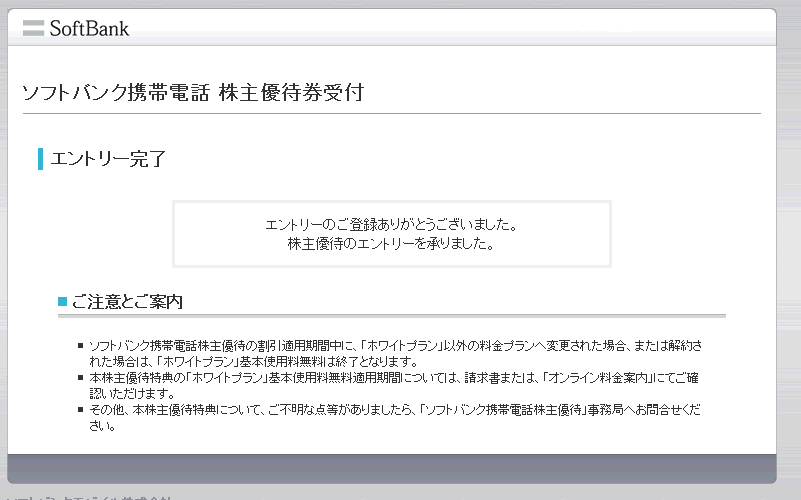 このままソフトバンクの株を持っていれば、半年に一回、株主優待を利用してホワイトプランが無料になりそうです。