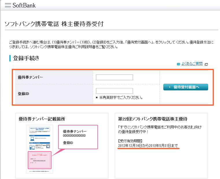 まずは、ソフトバンクの株主優待受付ページに行きます。