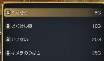 例えば「上やくそう」を作るのには、「やくそう:8G」が2つ。つまり16G必要です。