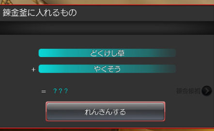 錬金釜ではいろいろなものを組み合わせて、新しいアイテムを作ることができるようです。