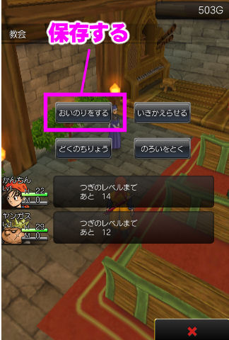 「お祈りをする」を選択すると、セーブできます。