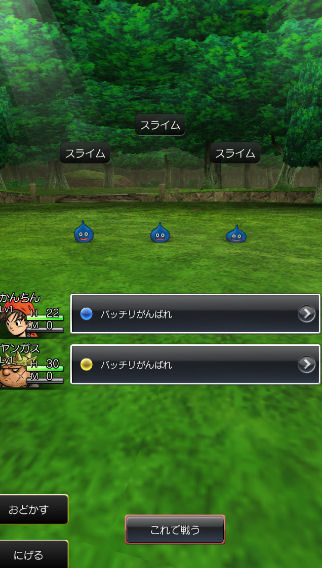 戦い方は、誰がどのモンスターと戦う。というよりは、だいたいの指示を与えて全自動で戦う。といった感じ。まぁ、スマホだとこの方が向いているかな、と思います。