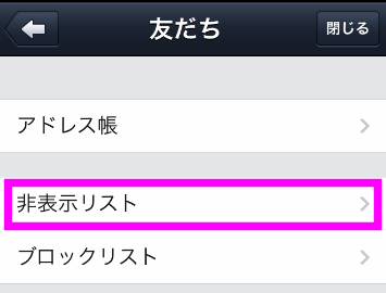 非表示している友達を見たい場合は、「非表示リスト」をタップします。