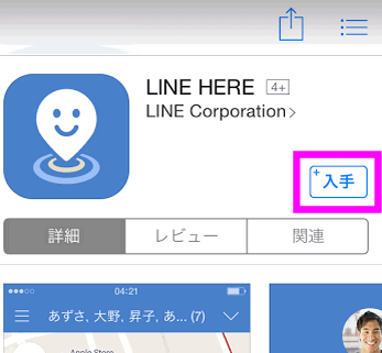 App StoreやGoogle Playが立ち上がって、LINE HEREのインストール画面になります。