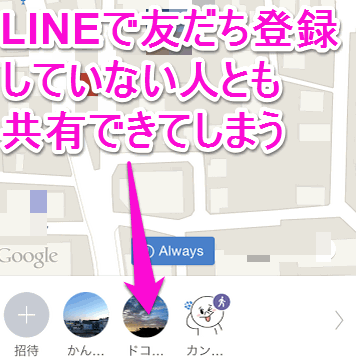 さて、このLINE HEREは、LINEの友だち登録をしていない人とも位置情報の共有ができてしまいます。