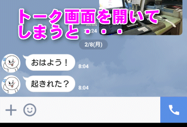 通知以外でも、相手のトーク画面を開かなければ既読になりません。例えば・・・