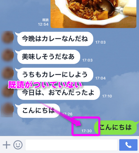 メッセージも表示されていますが、これを見ただけでは相手には既読にはなりません。