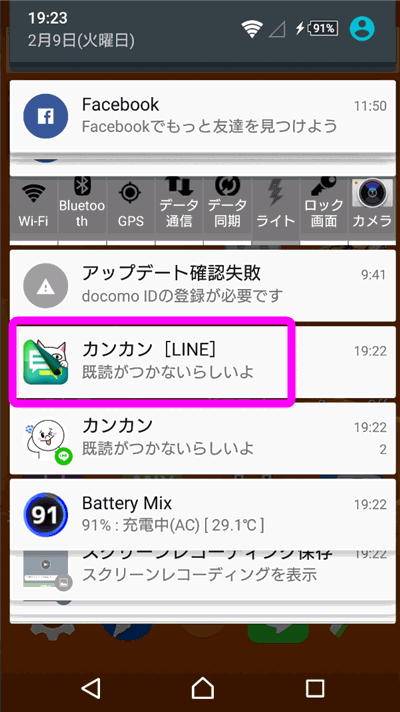 アンドロイドの場合、通知のメッセージをスライドさせると、未読メッセージを自由に表示することが出来ます。