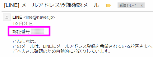 すると4桁の認証番号が記載されたメールアドレスが届くので、メモしておきます。