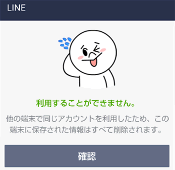 引き継ぎが完了した古いスマホのLINEを立ち上げるとこのような画面が表示されます。この場合は、「確認」をタップします。