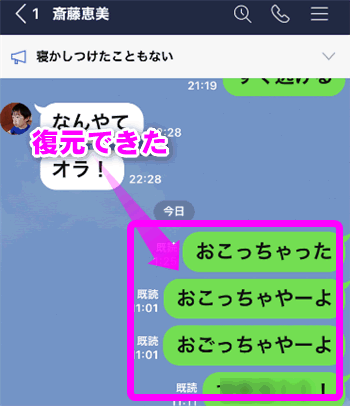 「はい、トーク履歴を復元します」をタップ。