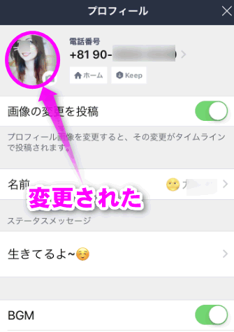 プロフィールを表示させなくても、トークリスト上の画像も動きます。