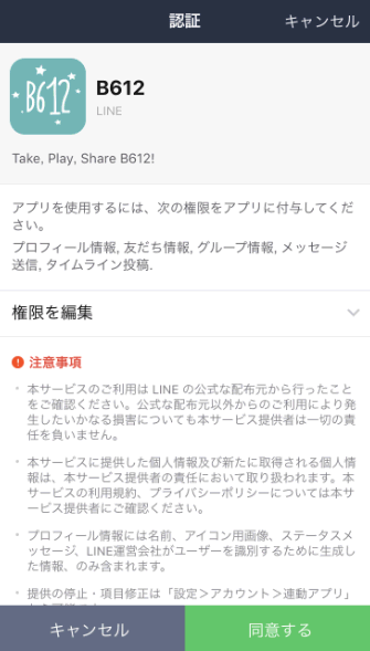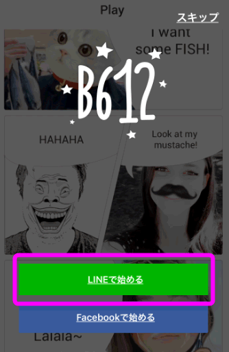 B612のインストールが完了したら、立ち上げます。すると、このような画面になるので、「LINEで始める」をタップします。