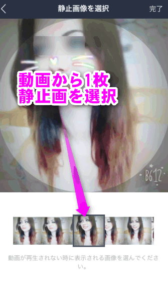 iPhoneで撮影したり保存したりした動画を直接プロフィールに貼り付けることは出来ません。アプリ経由で設定する必要があります。対応しているアプリが、B612という動画にアニメーションをつけたり、プリクラのようなエフェクト(目を大きくしたり、シワを消したり)をかけることができるアプリです。