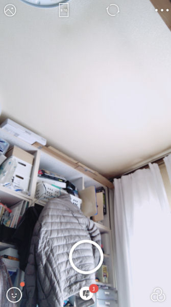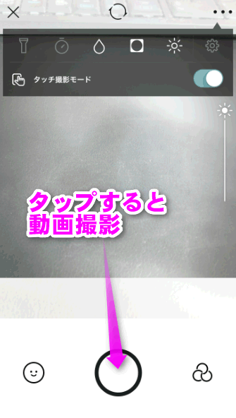 こちらが「B612」の基本画面。中央下にある大きな丸のボタンをタップすると、動画の撮影が始まります。
