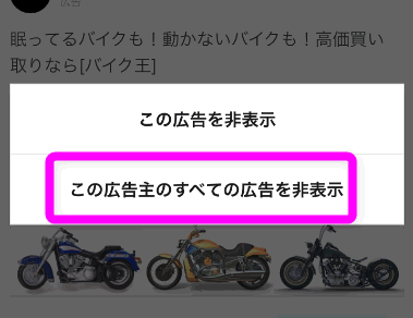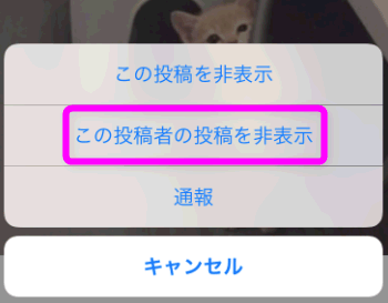 今度は「この投稿者の投稿を非表示」というのが選択できるようになりました。