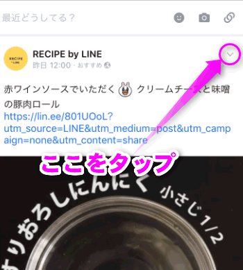 まず、非表示にさせたい投稿の左上のアイコンをタップします。