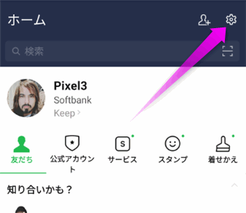 アンドロイドのLINEは、設定用のダイヤルアイコンは右上にあります。