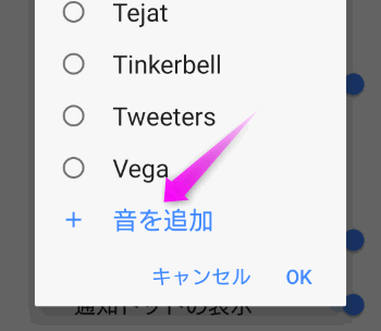一番下までスクロールすると、「音を追加」というボタンがあるのでここをタップ。