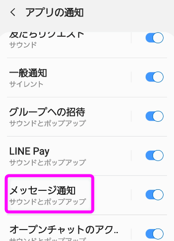 友達からのメッセージの通知音は、「メッセージ通知」になります。ここをタップ。