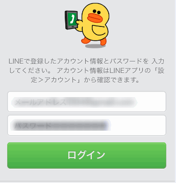 LINEに登録してあるメールアドレスと、パスワードを入力し、「ログイン」をタップします。