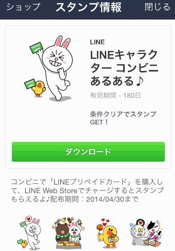 期間限定でオリジナルスタンプ(LINEキャラクター コンビニあるある)が無料でダウンロードできるのが特徴です。