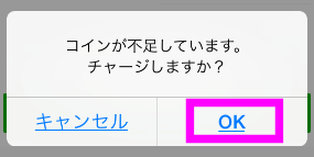 チャージしたことがない場合や、チャージの残が不足する場合、このような表示がでるので「OK」をタップします。