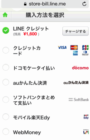 購入方法が表示されるので、「LINE クレジット」をチェックします。