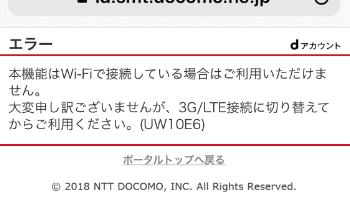 このようなエラーが出た場合、Wi-Fiをオフにしてください。(「戻る」をタップします)